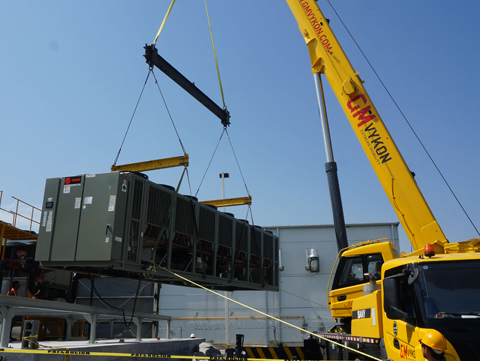 INGENIERÍA, VENTA E INSTALACIÓN DE CHILLER DE 300TR MARCA TRANE MODELO RTAE300T, ESTE EQUIPO CUENTA CON LAS MEJORES PRESTACIONES EN EL MERCADO, MÁXIMA EFICIENCIA EN CONSUMO ELÉCTRICO Y MÍNIMA EMISIÓN DE RUIDO. DEBIDO A QUE LA INSTALACIÓN DE ESTE EQUIPOS SE RELIZÓ A ESCASOS METROS DE UNA ZONA HABITACIONAL SE RECOMENDO ESTE MODELO PARA EVITAR MOLESTIAS POR DICHO CONCEPTO